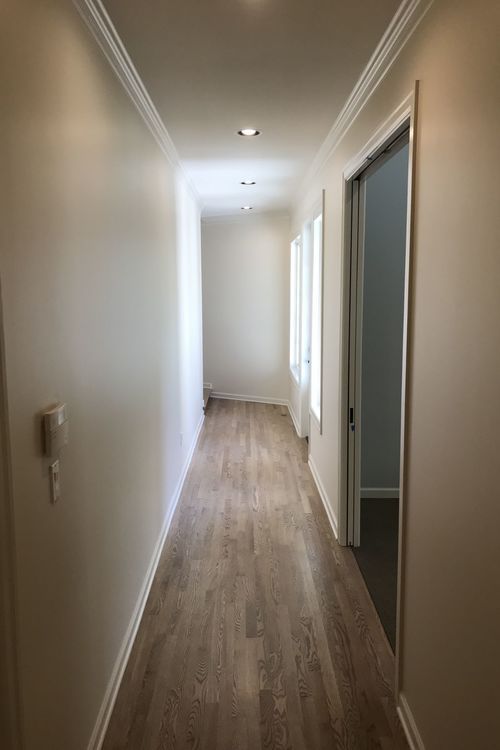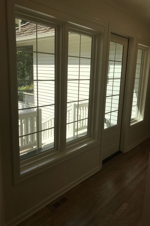 the house to an existing bonus room on the back of the garage. While the addition was just a hallway, connecting to existing finishes in the house including hardwood floors, trim and the roof were challenging aspects of the project. In the hallway, an exterior door and 3 windows were installed out to a deck with stairs leading down to the back yard.