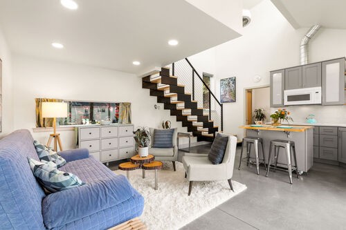 This thoughtful custom built ADU provided the clients with a beautiful income property/guest quarters in their own backyard. The space was a partnership with Crimson Park Designer Shelli Park whose thoughtful design and style elevated the project to next level living. The small home boasts a loft bedroom space, full kitchen and great room area, along with a bathroom, office, and single car parking.