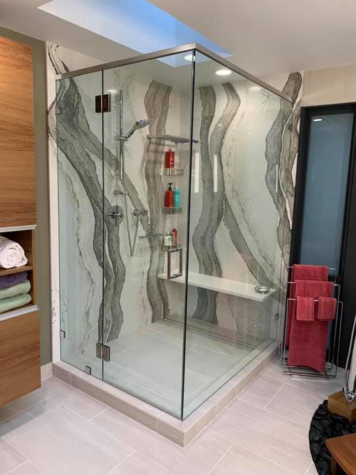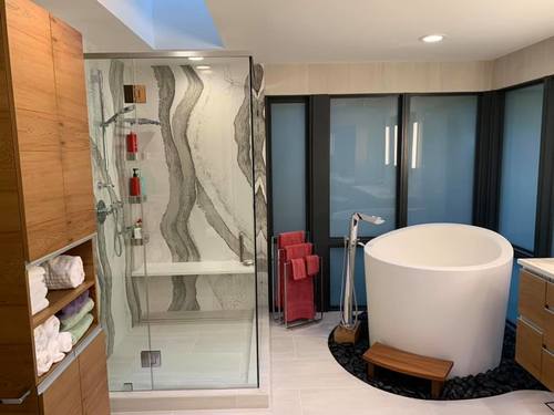 This bathroom remodel was designed by Shelly Park with Crimson Park Designs.