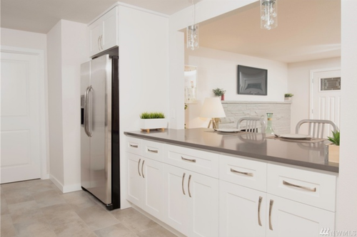 This house underwent a complete renovation for new owners. Major systems including re-piping the house, updated electrical circuits, new furnace and hot water heater were installed. New windows, doors and trim were installed throughout the house. The kitchen was gutted and the wall opened up to the living room. New cabinets with quartz counters and tile backsplash were installed. The large bathroom was gutted and actually divided to create a second bathroom off the master bedroom.